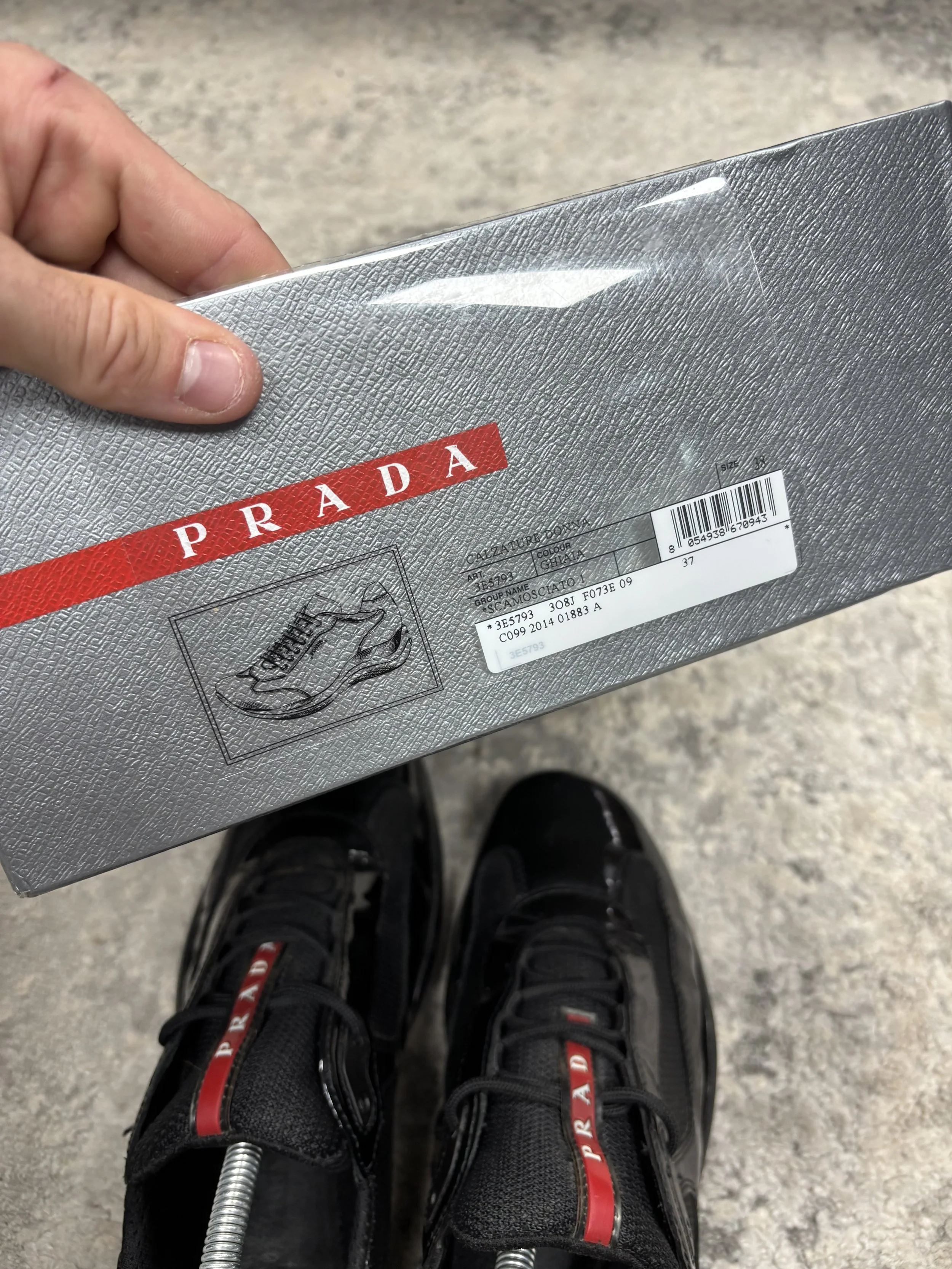 NEW ARRIVALS › Prada America cup (6) Image 1 of 10 Image 2 of 10 Image 3 of 10 Image 4 of 10 Image 5 of 10 Image 6 of 10 Image 7 of 10 Image 8 of 10 Image 9 of 10 Image 10 of 10 Prada America cup (6) £110.00 sold out Good conditionBlack glossy patentSize 5 fit 6 Original box Sold Out Added! Good conditionBlack glossy patentSize 5 fit 6 Original box